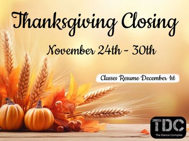 The studio will be closed November 24th - 30th, with classes resuming on December 1st!